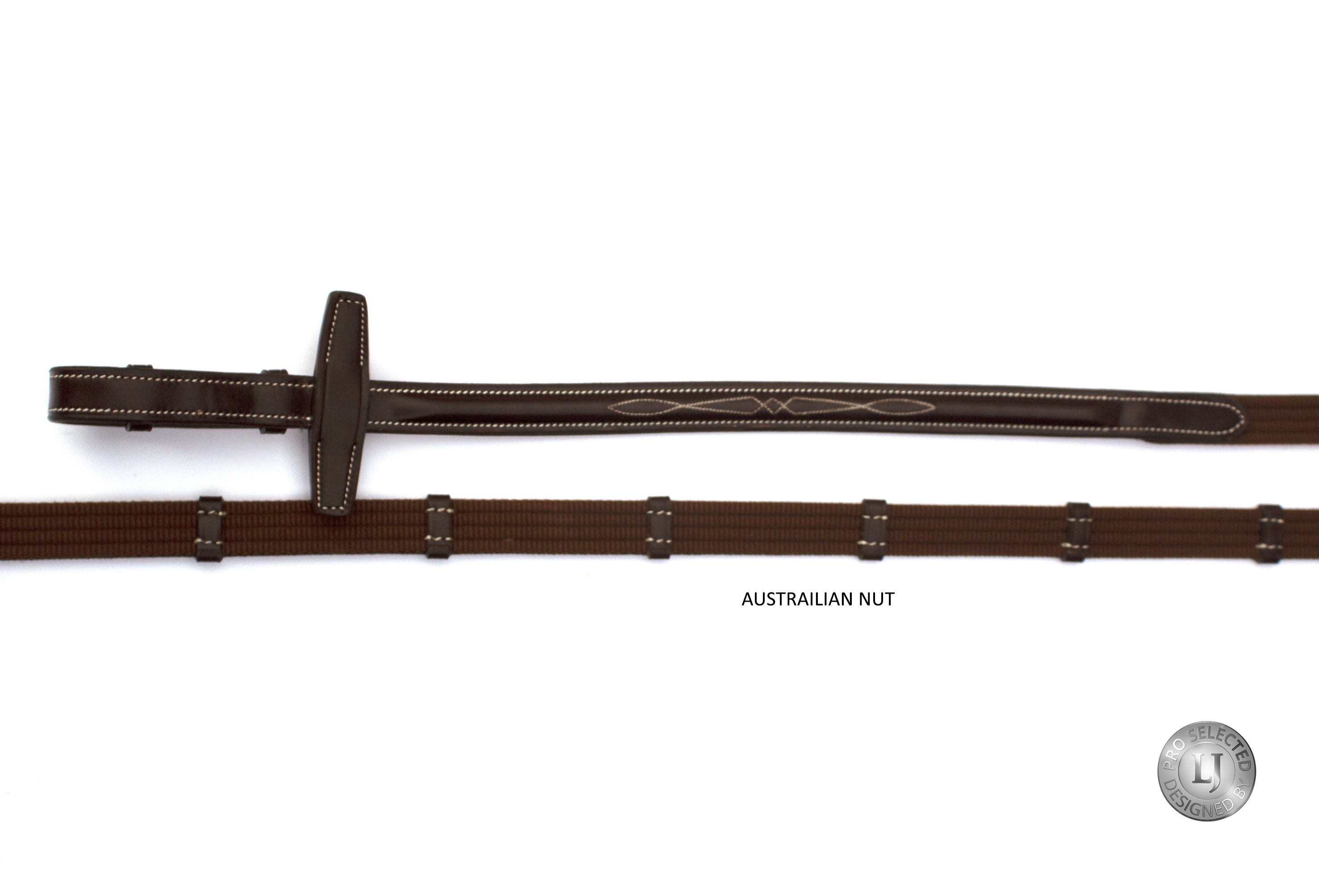 LJ Leathers Pro Selected Web reins with leather stoppers Brown