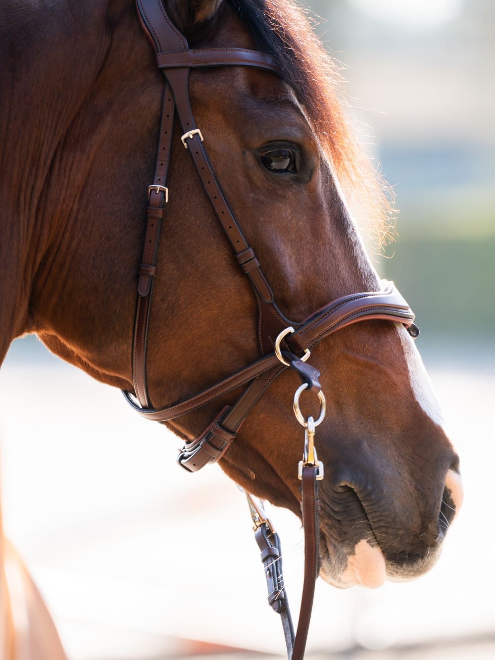 The anatomy of the modern horse has been taken into account in the design of each bridle. As a result, the bridles fit seamlessly with the shapes of the horse's head, which ensures optimal comfort. In addition, each bridle is equipped with an anatomical headpiece that has been cut back for more freedom at the ears. The padding of the headpiece is soft, but not too thick so that there is direct contact with the horse.