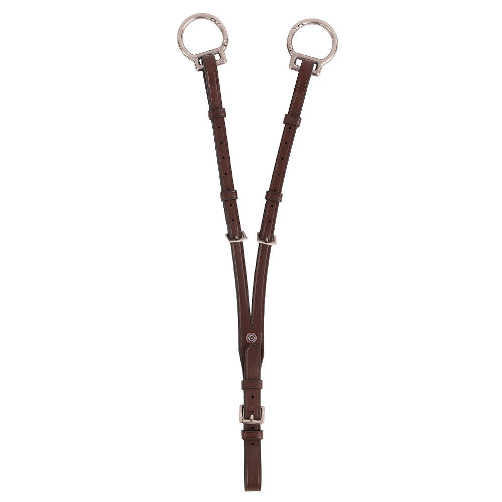 The TRUST Helsinki martingale attachment can be adjusted in three places for an optimal size. The attachment is open and matches TRUST's breastplates. The strap for attachment to the saddle is equipped with a roller buckle, which ensures easy attachment to the breastplate.