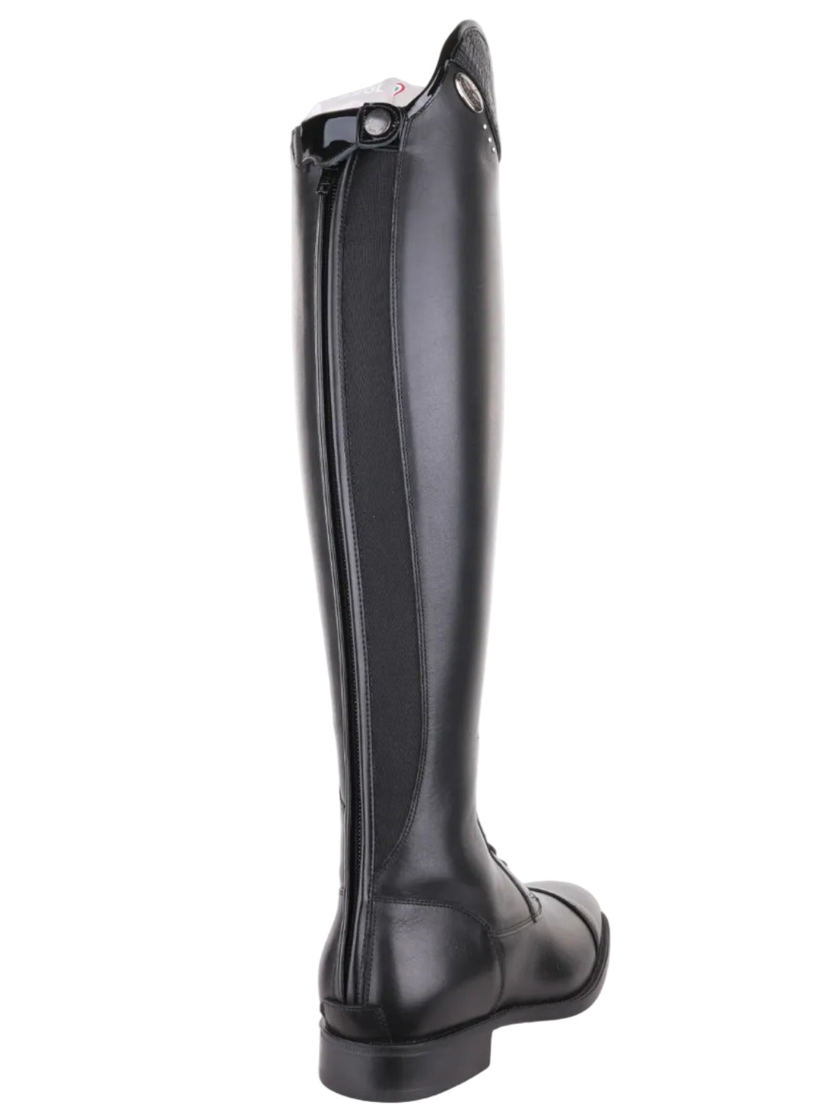 The Tricolore line is the entry-level collection of De Niro Boot Co. Tricolore riding boots are made from soft calf leather and produced in Italy. All Tricolore riding boots feature a leather lining and an elastic panel alongside the YKK® 9 mm back zipper, ensuring a comfortable and precise fit. In addition, all Tricolore boots are equipped with a removable insole containing active carbon particles for shock absorption. The boots are finished with a molded rubber sole, securely stitched to the boot.