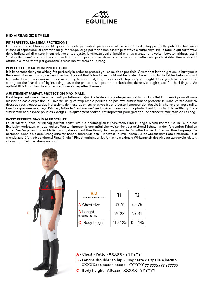 - Airbag vest for children from 17 kg, 6 to 11 years old.