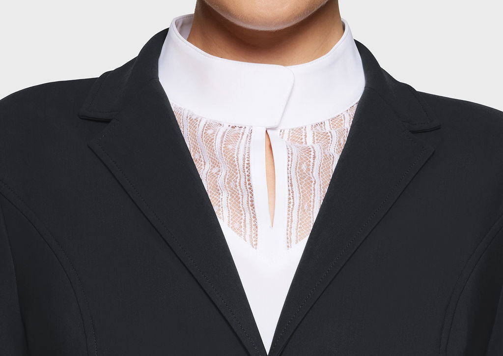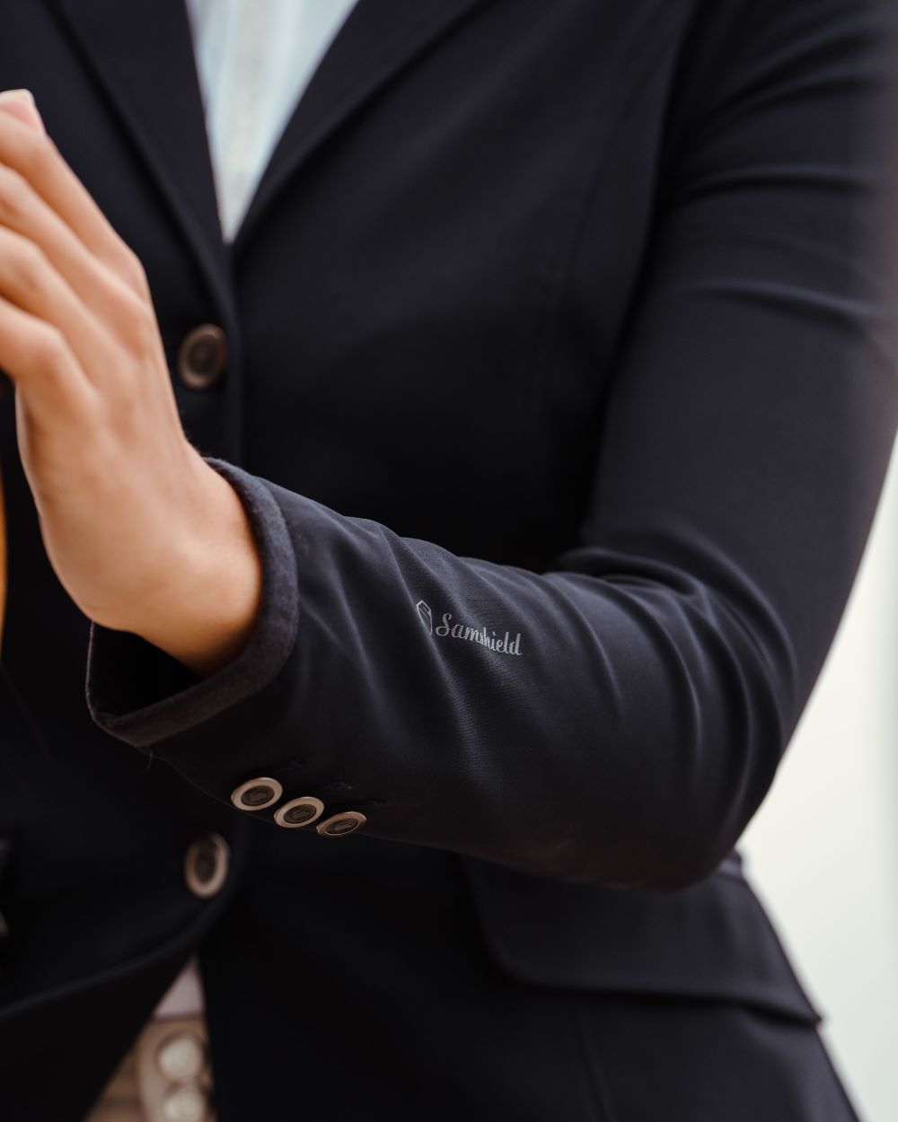 The Alix competition jacket is particularly suitable for riders who like a neutral jacket. This longer model riding jacket suits all disciplines. It is made from a technical stretch and breathable fabric that offers fit, flexibility, lightness and durability for optimal comfort. The inner lining of the jacket, made of highly stretchable fabric and mesh, ensures excellent breathability and freedom of movement. The Alix jacket is UV treated to protect the skin from ultraviolet rays.