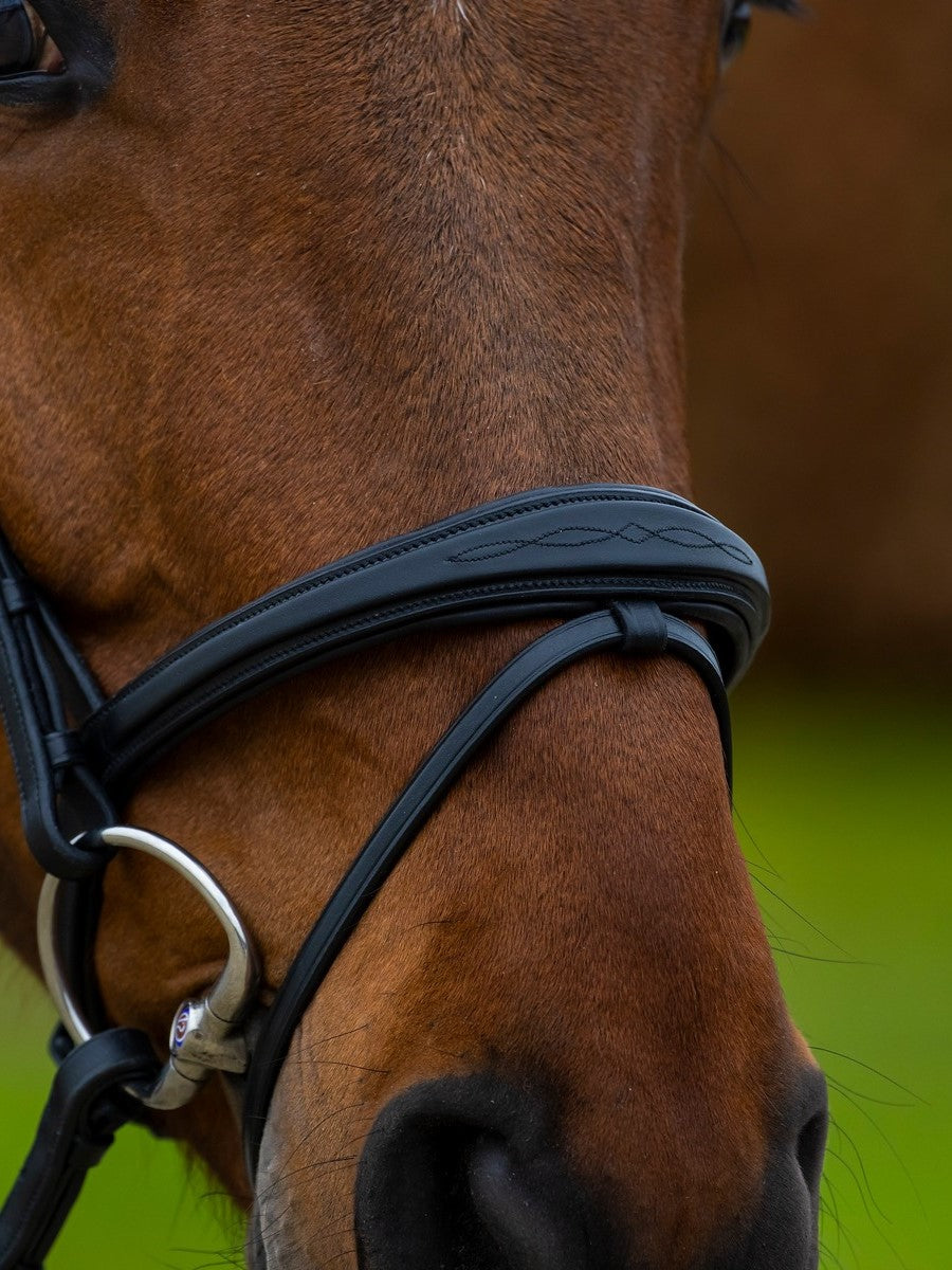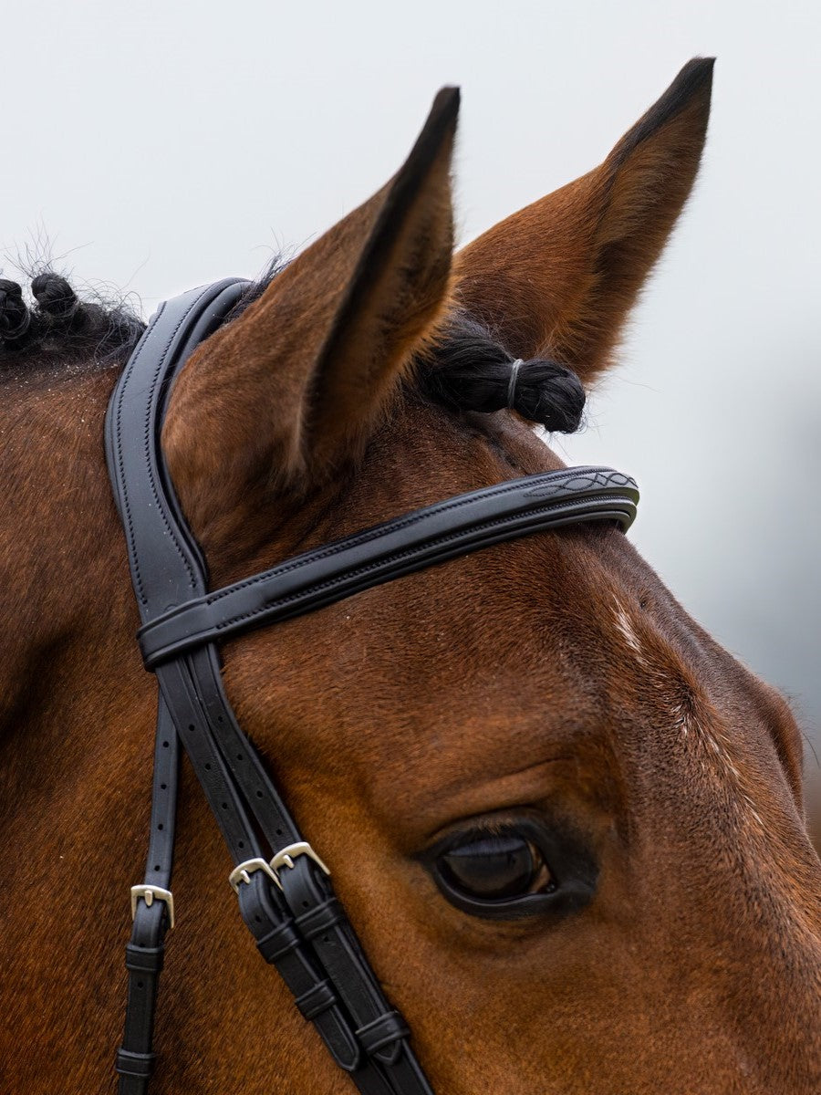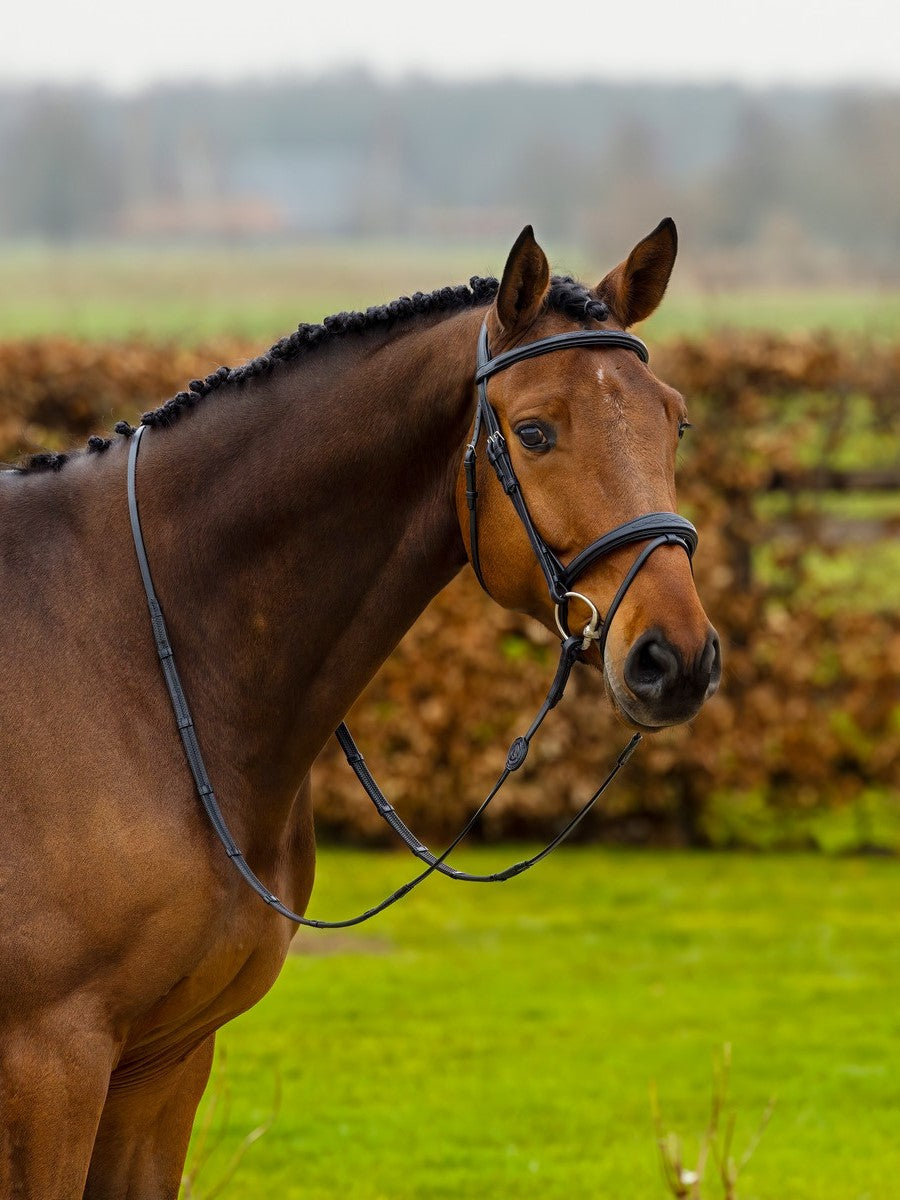 The anatomy of the modern horse has been taken into account in the design of each bridle. As a result, the bridles fit seamlessly with the shapes of the horse's head, which ensures optimum comfort. In addition, each bridle is equipped with an anatomical headpiece that has been cut back for more freedom at the ears. The padding of the headpiece is soft, but not too thick so that there is direct contact with the horse.